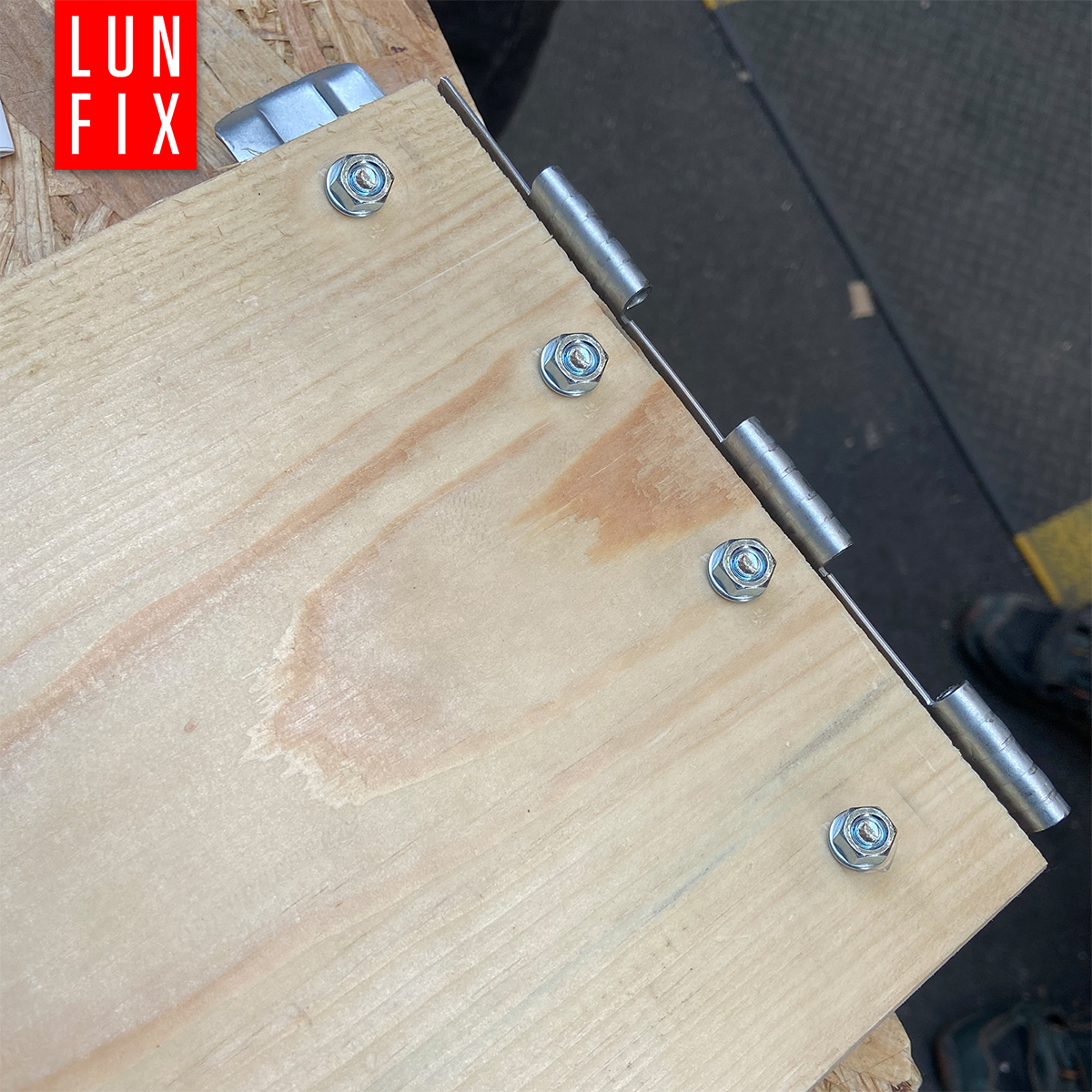 3️⃣Połącz deski prostopadle tak, aby zawiasy z płytkek zazębiały się.