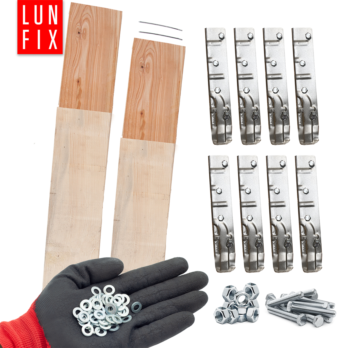 1️⃣Przykręć płytki na rogach desek. Użyj do każdego gotowego otworu po jednej śrubie. Na każdej płytce są 4 otwory.
