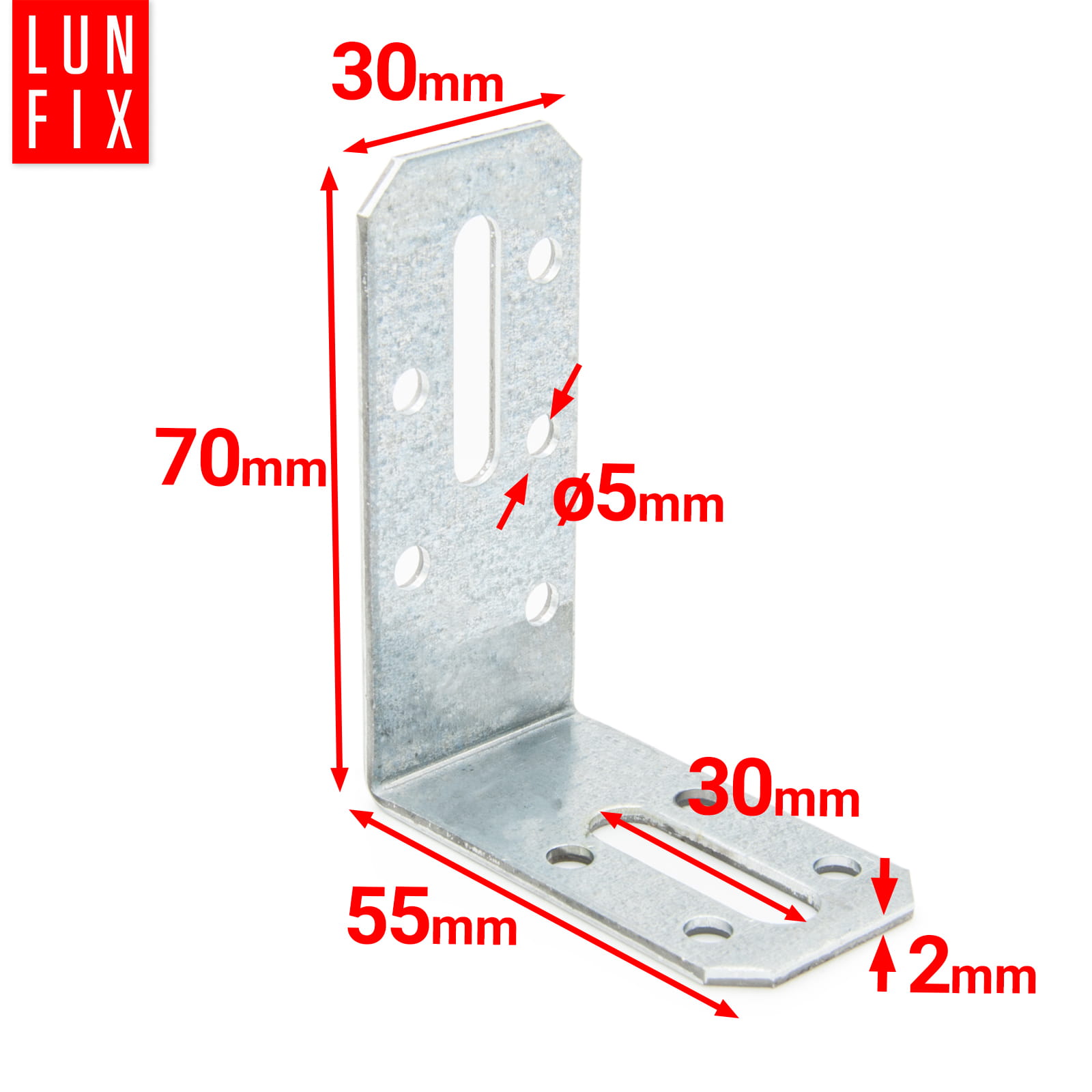 Kątownik regulowany dwustronny umożliwia= dokładne łączenie konstrukcji drewnianych tam, gdzie konieczna jest regulacja dla większej precyzji montażu. Przeznaczone między innymi do montażu suchej zabudowy z profili UA lub ścianek z płyty karton-gips. Duża ilość otworów, elips o różnych rozmiarach stanowi istotną właściwość, a ograniczeniem zastosowania w konstrukcjach jest tylko wyobraźnia montera. Kątowniki Lun Fix są ocynkowane, więc nie korodują.