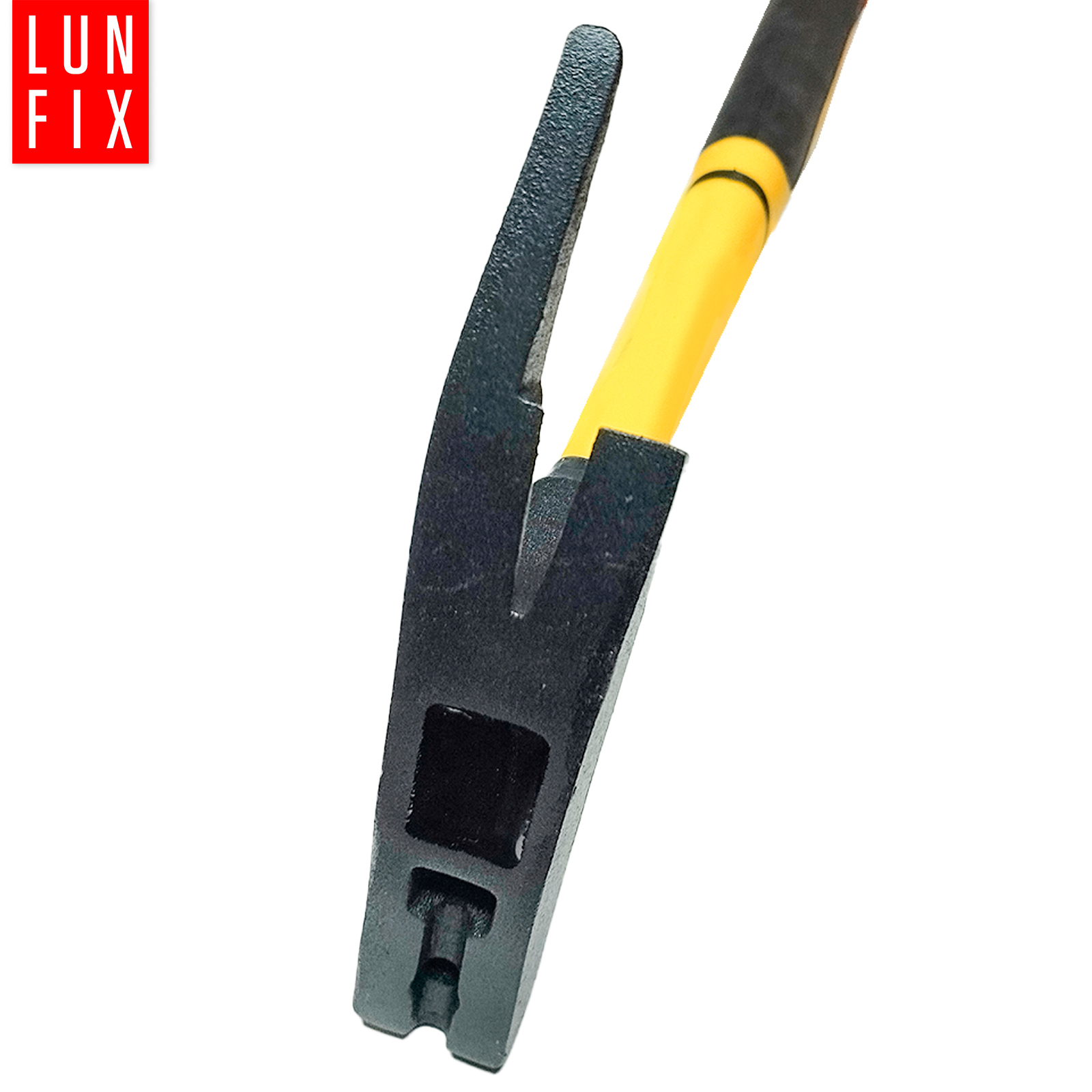 - Całkowicie metalowy młotek wyciągacz do gwoździ z wysokiej jakości stali narzędziowej, kuty, z dokładnie dochowanym trybem obróbki termicznej.