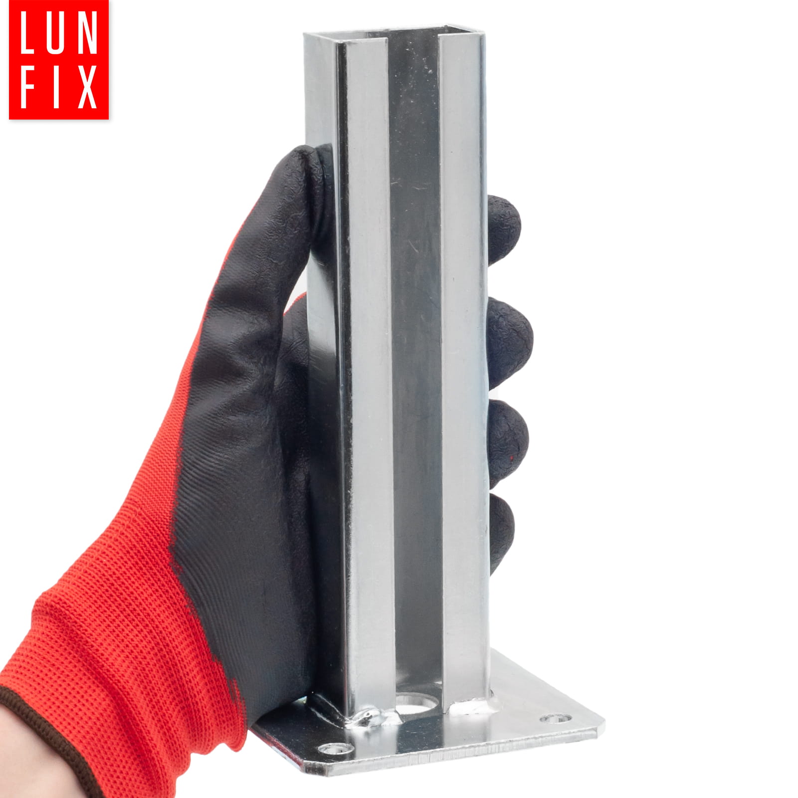 ▶️ Podstawa słupa przeznaczona do montażu słupków ogrodzeniowych do betonowego podłoża za pomocą śrub lub kotew do betonu.