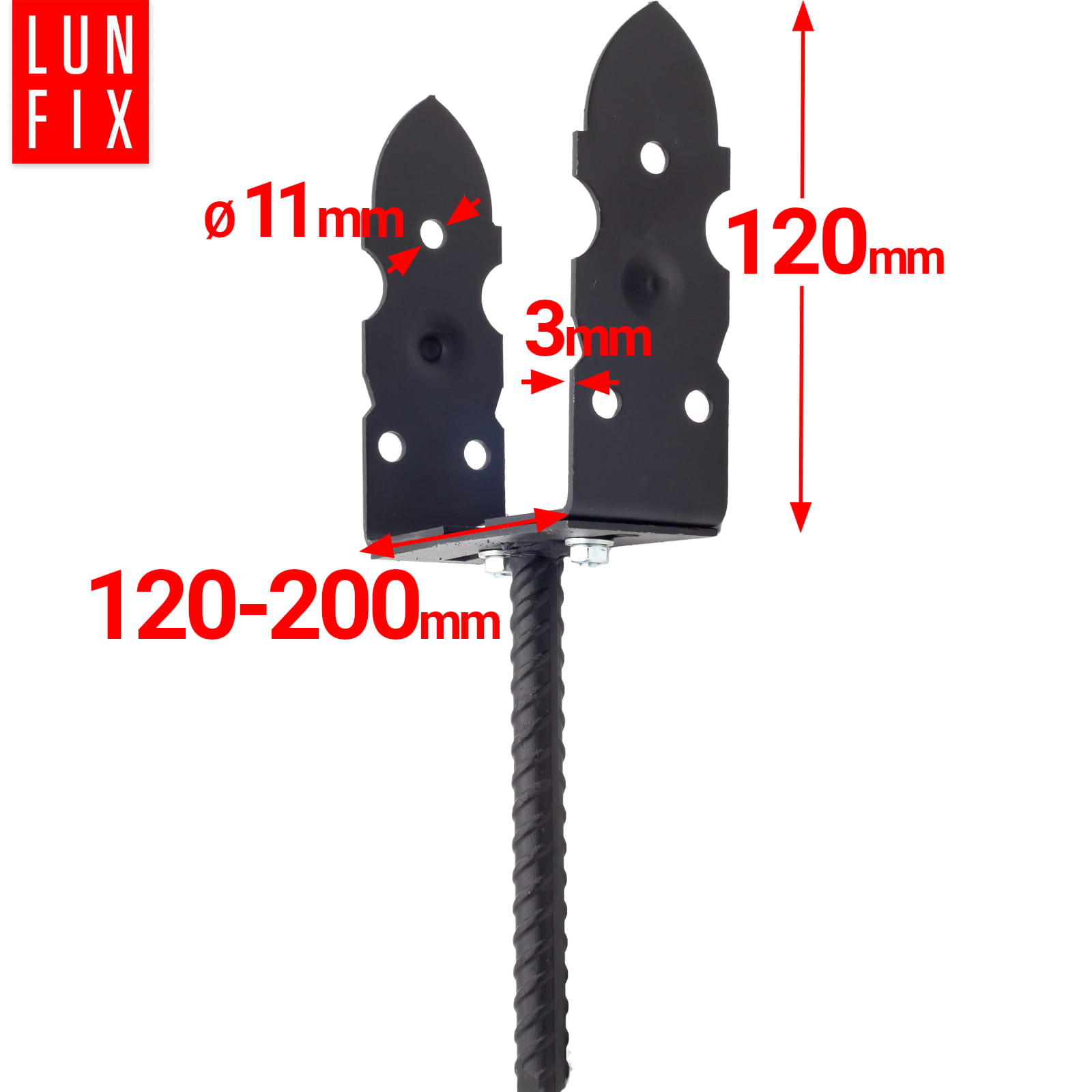 Podstawa słupa do wmurowania służy do mocowania słupów nośnych w betonie. Pręt podstawy przeznaczony jest do zakotrwiczenia w podłożu. Do tak zmontowanej podstawy należu przykręcić słup za pomocą wkrętów lub śrub.