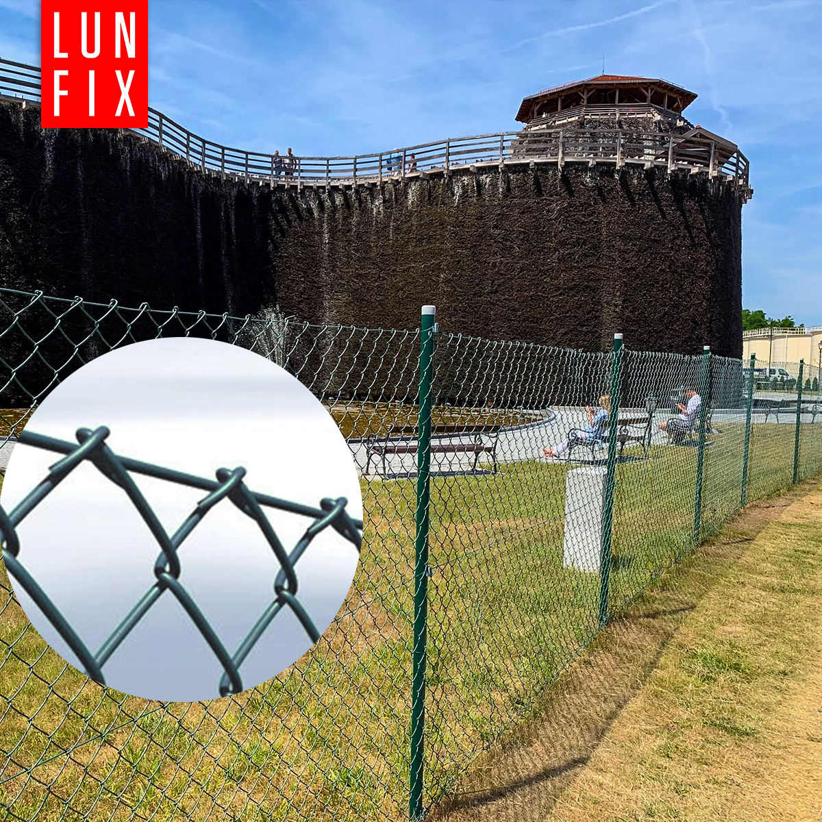 Siatka pleciona wykonana jest ze stalowych drutów, pokrytych warstwą PVC - polichlorku winylu. Dzięki tej powłoce siatka nie koroduje i jest odporna na mechaniczne uszkodzenia oraz warunki atmosferyczne. Dzięki odporności na mróz i promieniowanie ultrafioletowe zachowuje swój nienaganny wygląd przez długi czas. Dodatkowo dzięki zagięciu końcówek po jednej stronie siatki uzyskano rodzaj "zamknięcia" utrudniającego rozplecenie ogrodzenia.