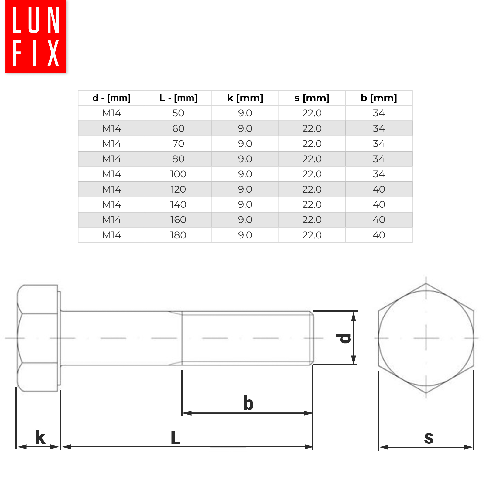 Śruba M14-160 ocynk DIN 931 kl 8.8 (1kg)