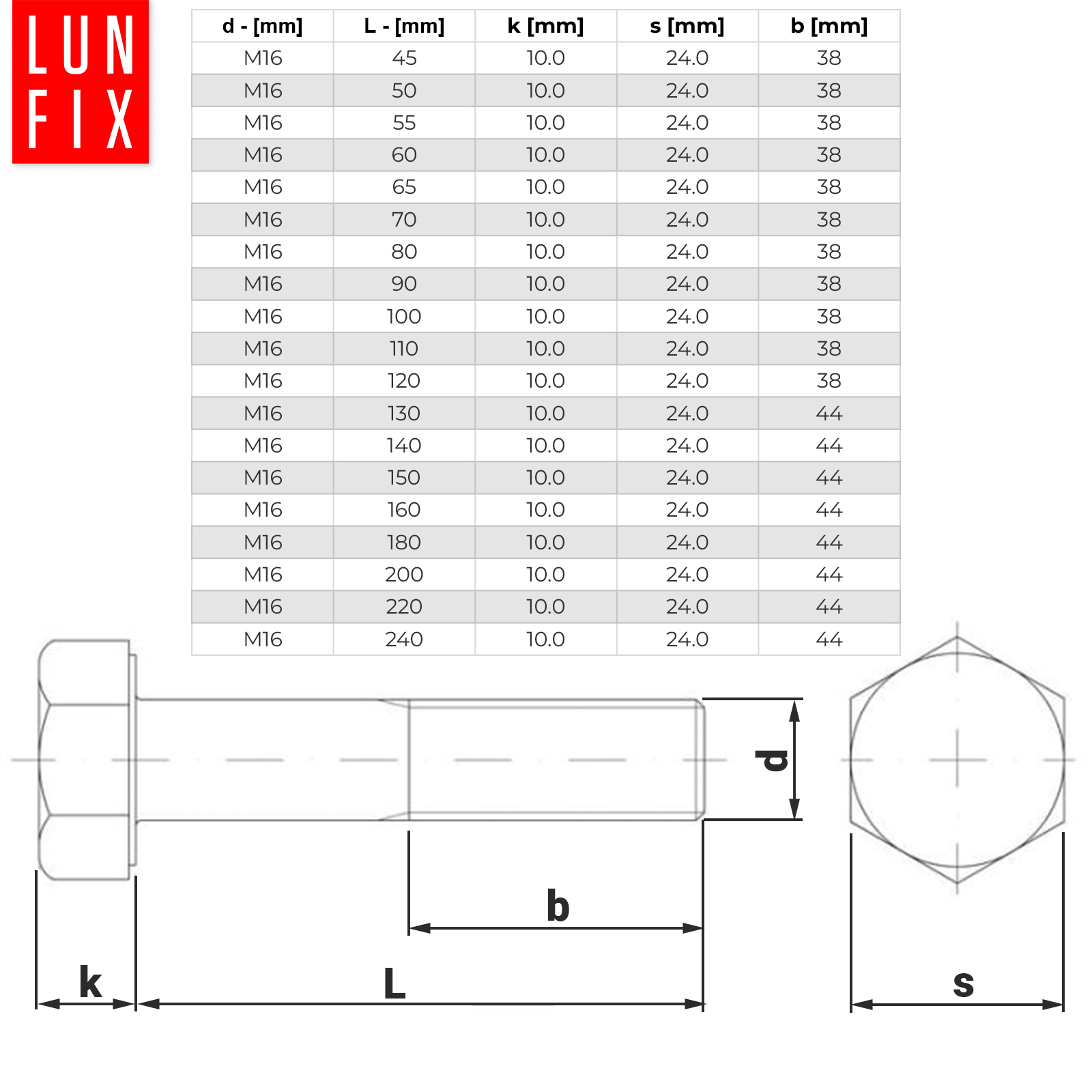 Śruba M16-065 ocynk DIN 931 kl 8.8 (1kg)