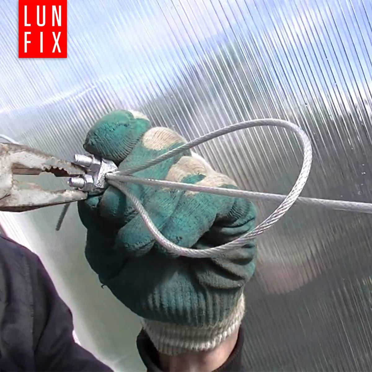 - Mocowanie linki ułatwi jej montaż do profili szklarni na jadnakowej wysokości.