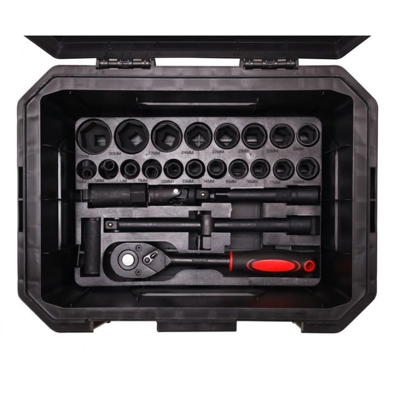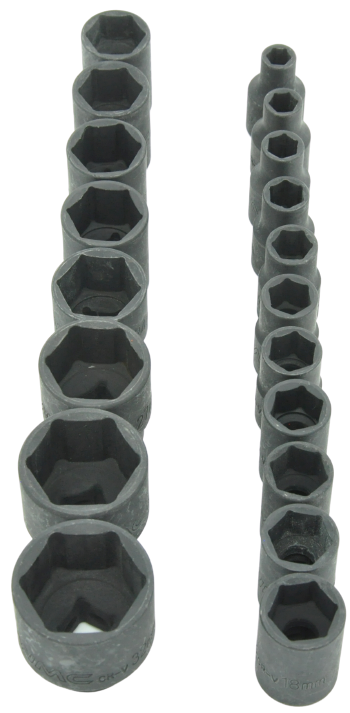 - Zestaw głowic udarowych 1/2 ": 8, 9, 10, 11, 12, 13, 14, 15, 16, 17, 18, 19, 20, 21, 22, 24, 27, 30, 32 mm