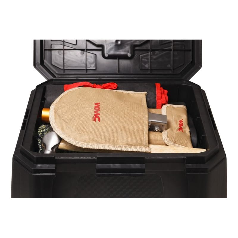 Wewnątrz stopnia-skrzynki znajdują się dwie szuflady na narzędzia oraz przestrzeń do przechowywania.