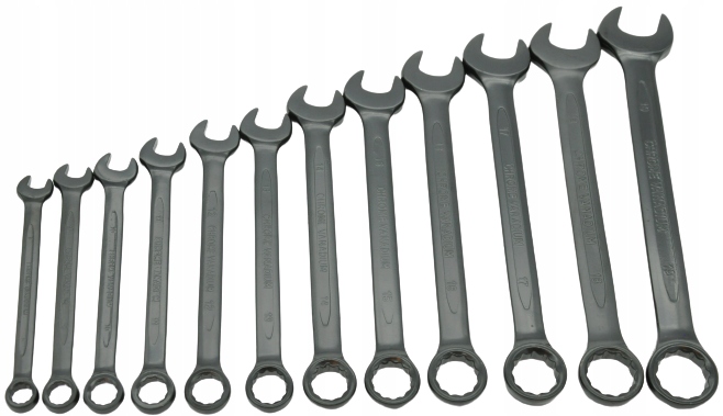 Klucze są wzmocnione, w kolorze czarnym o wymiarach: 8, 9, 10, 11, 12, 13, 14, 15, 16,17, 18, 19 mm.