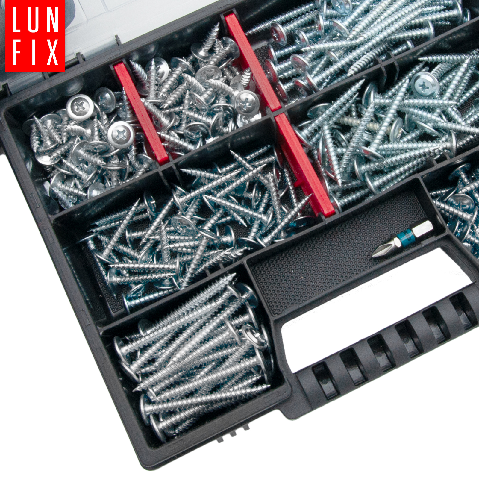 Duży zestaw wkrętów samogwintowanych z łbem talerzowym do metalu w praktycznej skrzynce. Bit do wkrętów GRATIS