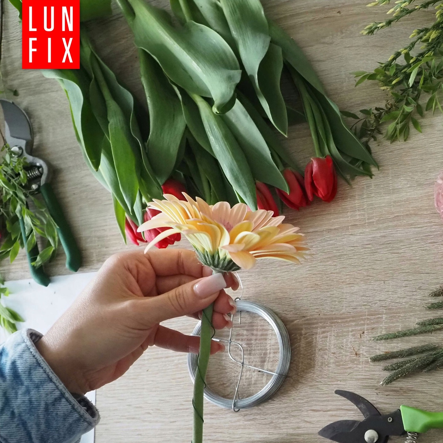 4️⃣ Układanie wieńców i wiązanek, bukietów, stroików – drut służy do spinania gałązek i kwiatów w zwartą formę.