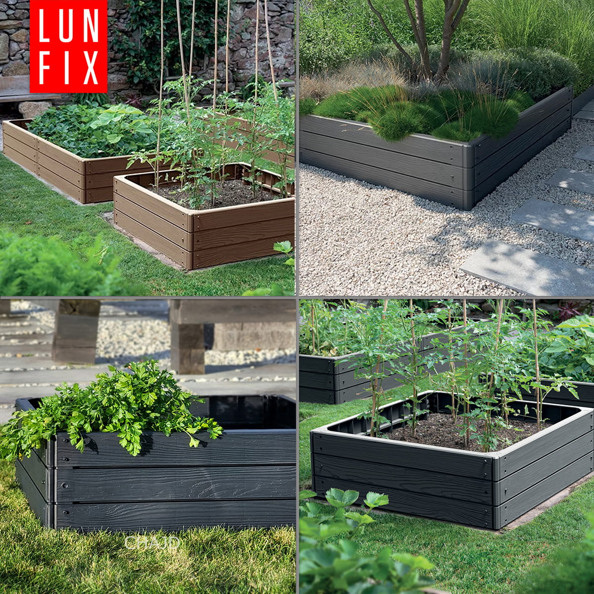 ❇️ Neutralna kolorystyka oraz powierzchnia inspirowana drewnem sprawiają, że rabatki wkomponowują się w krajobraz ogrodu idealnie łącząc się z roślinnością.