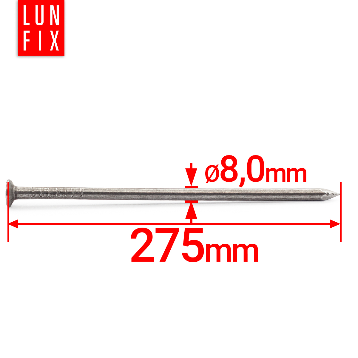 Gwozdzie budowlane czarne 8,0*275 (1kg)