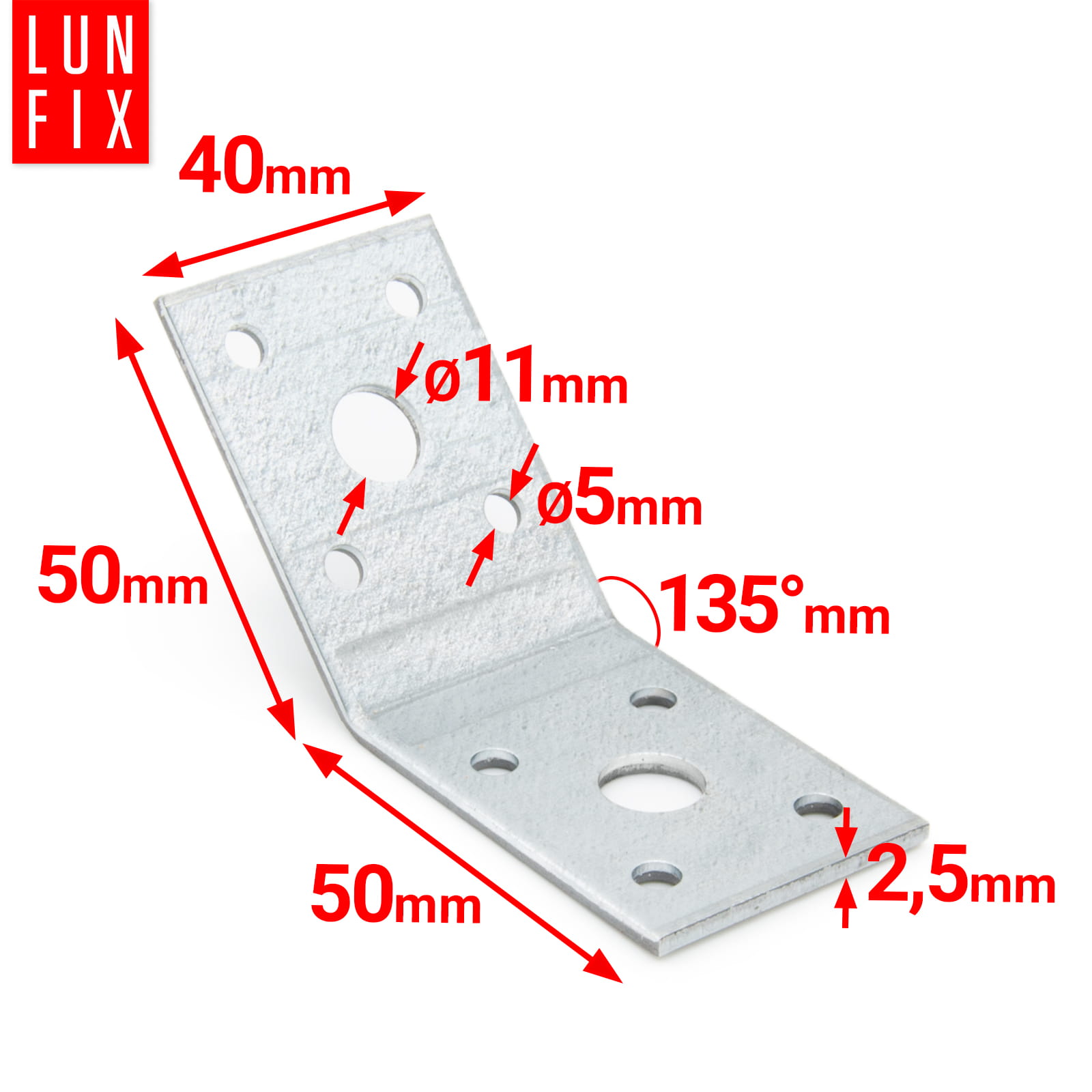 Kątowniki równoramienne z kątem rozwartym 135 stopni to wąska grupa rodziny łączników ciesielskich. Przeznaczone do montażu zastrzałów, mieczy lub przekątnych wzmocnień ramowych i dostępne w różnych rozmiarach.