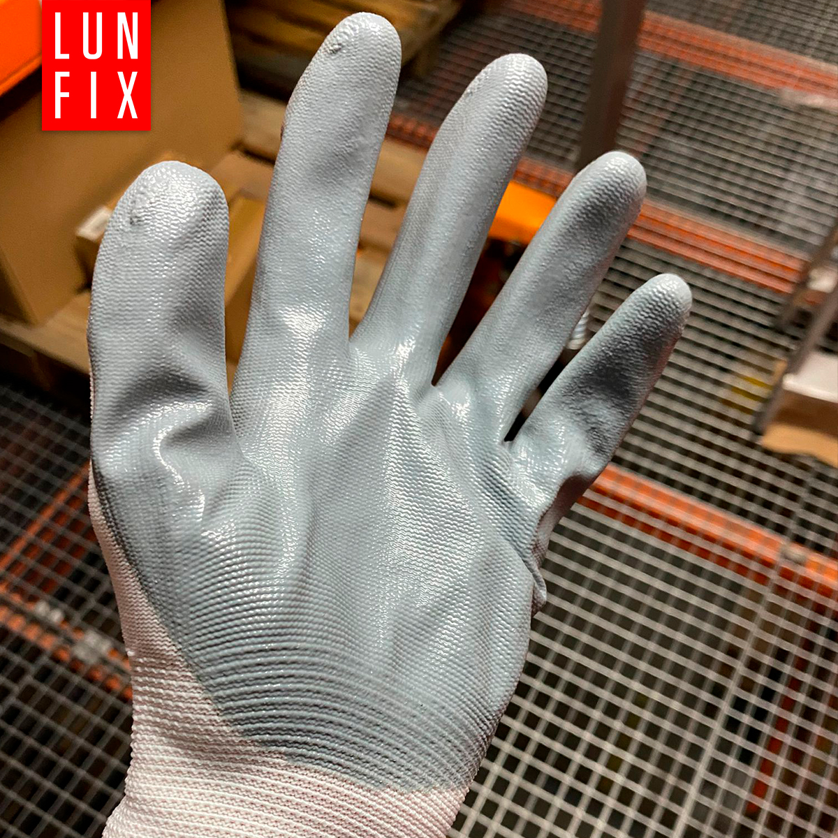 ☑️Rękawice poliestrowe w kolorze białym, powlekane cienką warstwą szarego nitrylu. Rękawice znajdują zastosowanie przy pracach ogólnych i mechanicznych ze względu na wysoką odporność na ścieranie i rozdzieranie. Ponadto, wykazują dużą elastyczność, dopasowując się do kształtu dłoni.