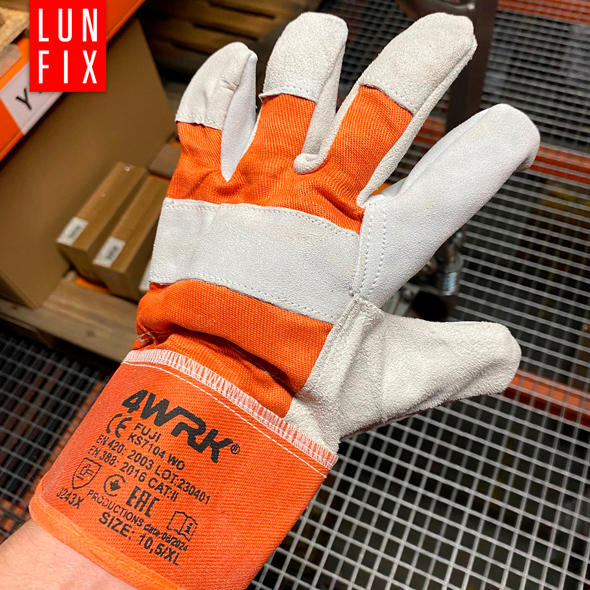 ✔️Rękawice zostały wyprodukowane z solidnej skóry dwoinowej w części chwytnej i wytrzymałej tkaniny drelichowej, która znajduje się na pozostałej powierzchni. Charakteryzują się bardzo dużą odpornością na ścieranie, przecięcie, rozdzieranie oraz przekucie.
