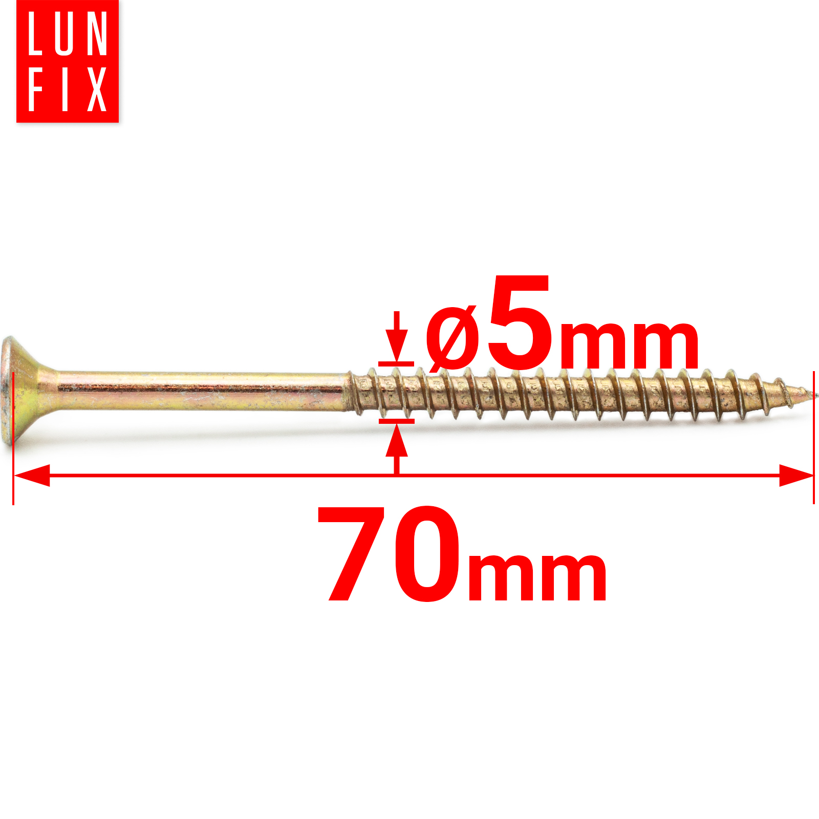 - Stożkowy łeb umożliwia schowanie całego wkręta w łączonym materiale.