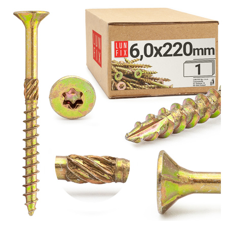 ✔️Specjalne ostrze - w zależności od partii ostrze posiada nacięcie bądź podwójny gwint. Obydwa z nich ułatwiają wkręcanie. Nacięcie na początku gwintu ułatwia rozpoczęcie wkręcania oraz zapobiega pękaniu drewna. Nie wymaga wstępnego nawiercania, natomiast podwójny gwint posiada dodatkowe zwoje na szpicu, które pozwalają na szybsze "załapanie" drewna przy mniejszej sile docisku.