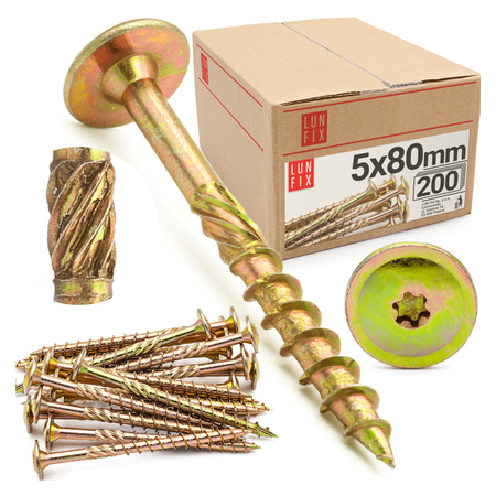 Montaż z konstrukcyjnymi wkrętami jest zdecydowanie łatwiejszy dzięki wysokim parametrom wytrzymałościowym. Charakteryzują go między innymi wytrzymałość na wyrywanie, ścinanie itp. Gniazdo TX gwarantuje optymalne przeniesienie momentu obrotowego oraz zwiększa powierzchnię docisku.